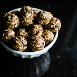 Gluten-Free Oatmeal Spice Breakfast Bites with Cocoa Nibs and Dried Cranberries